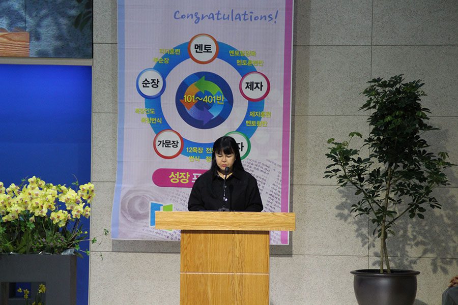 사회보는 최명옥집사님~