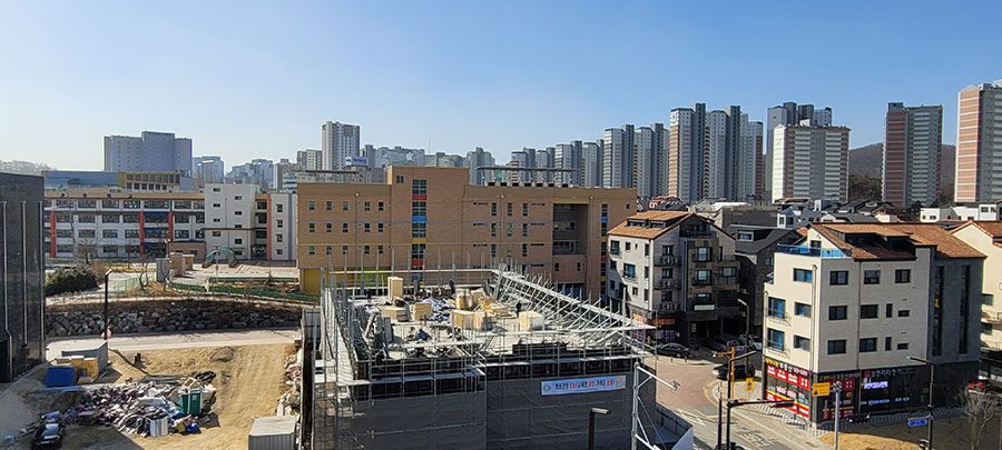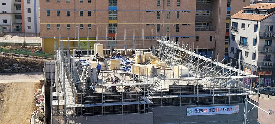 3층 외벽 공사대 설치~~
