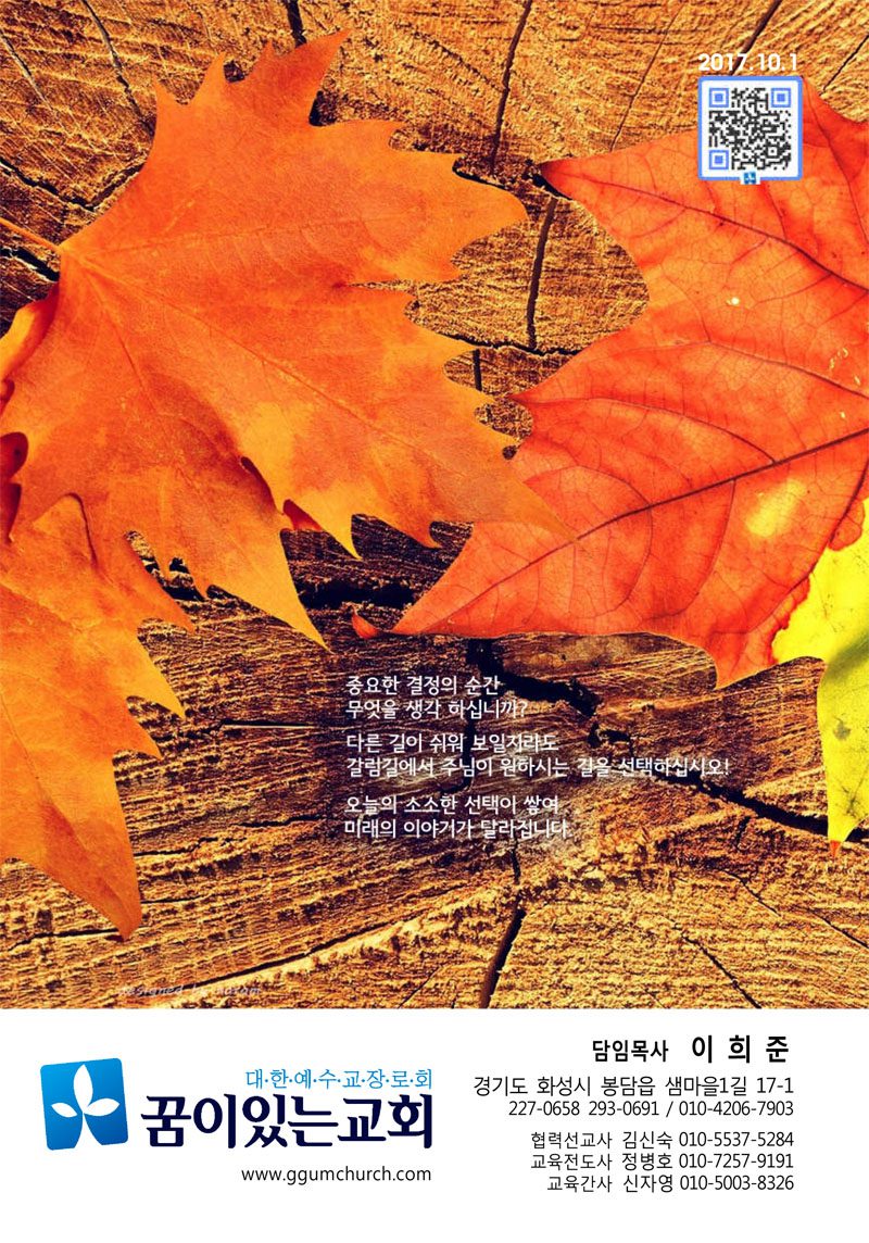 결정의 순간마다 주님이 원하시는 결정을 내리는 것이 곧 평안이요 승리요 복임을 믿습니다. 늘 주안의 신앙으로 홧팅해요^^