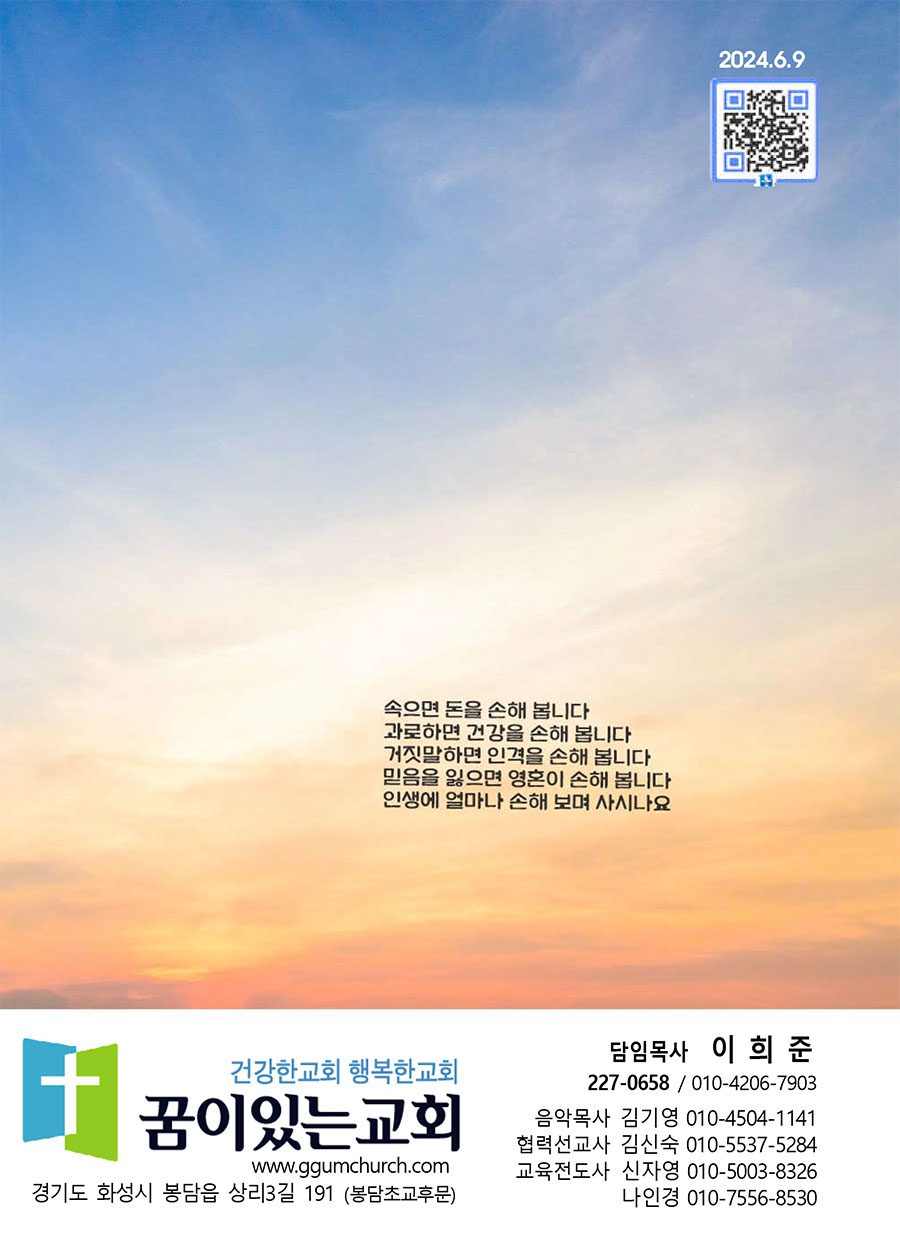 6월9일 예수님안에 손해가 없습니다