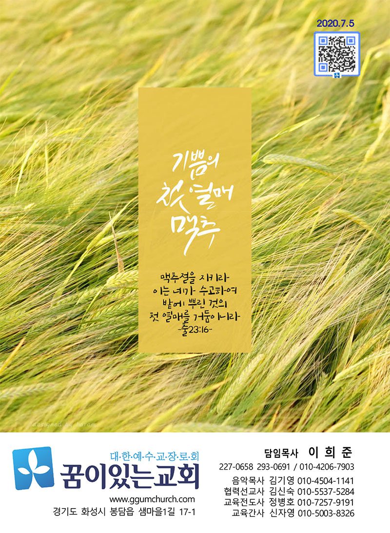 7월6일 기쁨의첫열매 맥추