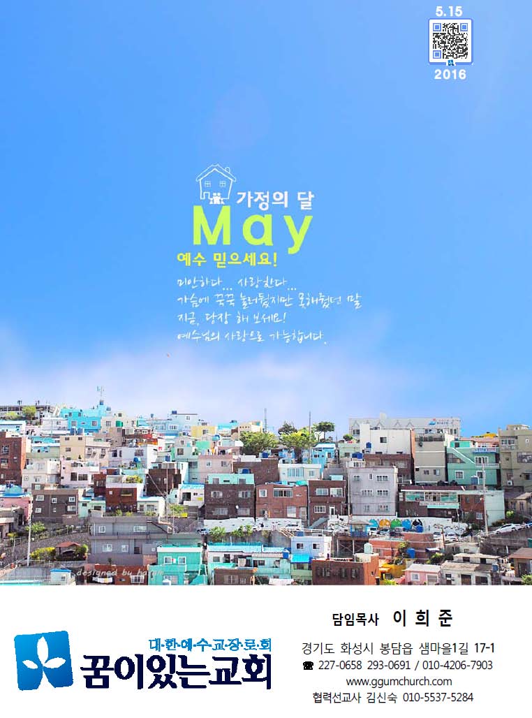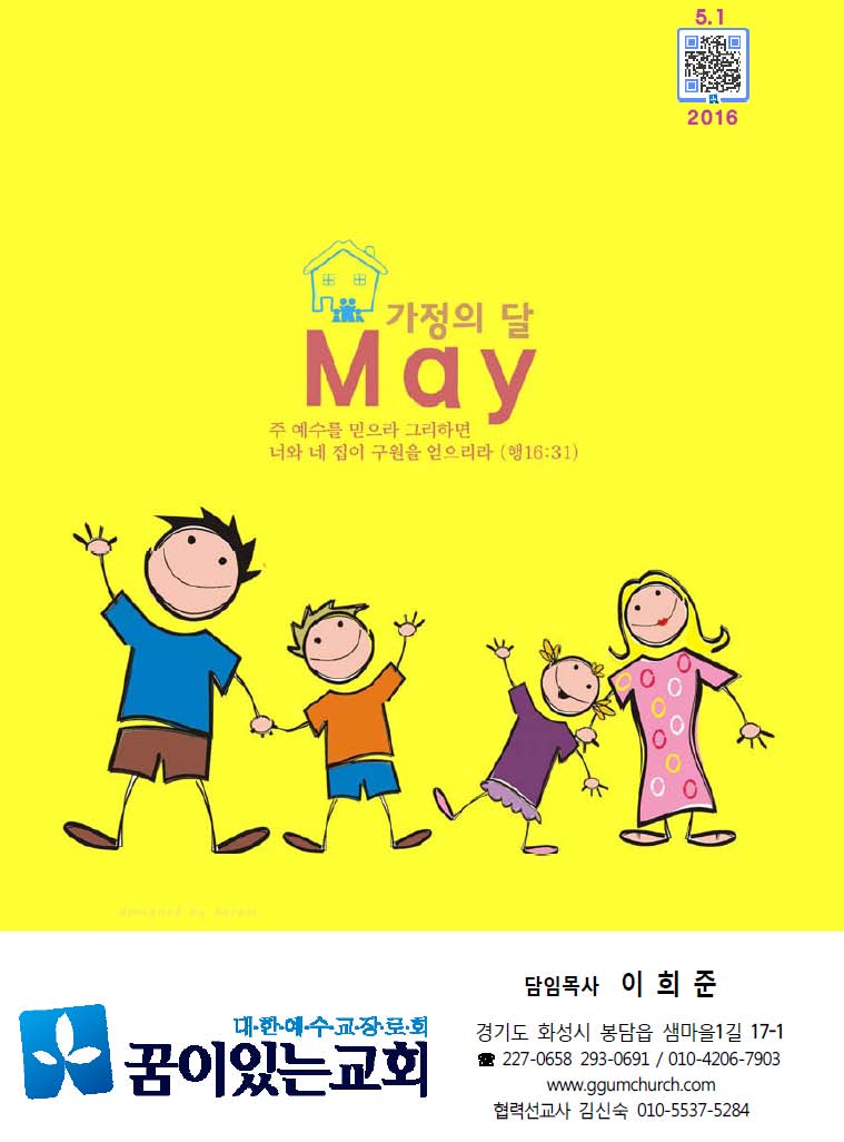 5월 가정의 달을 맞아 성도님들의 가정과 자녀들에게 주님의 은총이 더욱 가득하게 임하시길 기도합니다.